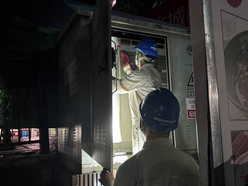 凌晨3时,故障处理进入核心环节——电缆接线端锈蚀螺丝更替。电网抢修人员手持扳手,小心翼翼地卸下锈蚀的旧螺丝,换上新部件。实践团成员们在一旁默契配合,有的帮忙架设应急照明灯,照亮检修区域的每一个角落;有的趁机向现场工作人员请教,把课堂知识与现场实践的缝隙一点点填满。实践团成员温东阳在笔记本上快速记录:“螺丝锈蚀导致接触不良,是高温异常的直接原因。”