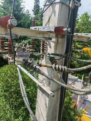 “智创乡行”暑期三下乡社会实践团成员在重庆市武隆区仙女山街道开展设备巡检,通过红外测温仪发现流云小区入口处台柱变压器柱上高压开关10kV电缆接线端温度异常,进线侧衔接处温度已突破120℃安全阈值,输电安全岌岌可危。一场深夜保供电缆抢修战的序幕就此拉开。