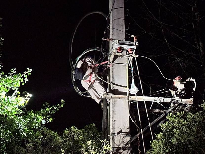 电网抢修人员开展断电操作
