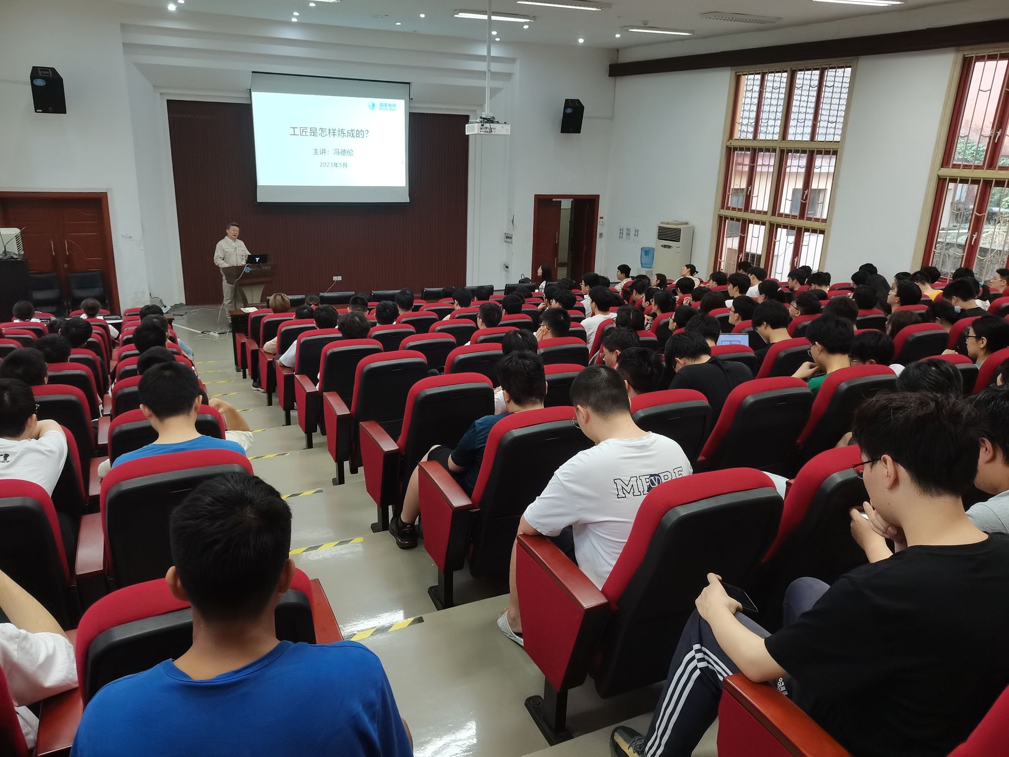 于2023年5月31日晚在A区6117会议室举办电气大讲堂——企业专家进校园专题讲座,此次讲座特别邀请到全国五一劳动奖章获得者、中国好人、国网重庆市电力公司市南供电分公司副总工程师冯德伦高级工程师担任主讲人,开展了以“工匠是怎样炼成的”为主题的精彩讲座。